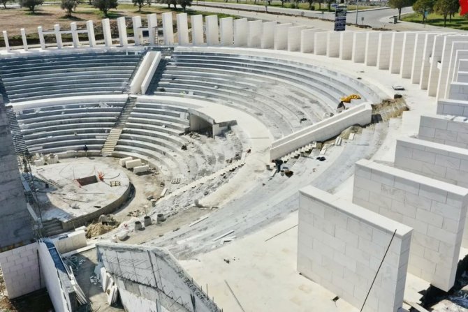 Didim Belediye Başkanı Ahmet Deniz Atabay'ın imza projeleri arasında yer alan Didim Amfitiyatro'da çalışmalar hız kesmeden sürüyor. Didim 2'nci koyda yükselen ve tamamlanmasıyla 4 bin kişilik dev bir merkez haline gelecek olan Didim Amfitiyatro'nun Haziran ayında açılması planlanıyor.