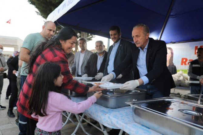 Renkli görüntülere sahne olan iftar etkinliğinde Başkan Atabay, Aydın Büyükşehir Belediye Başkanı Özlem Çerçioğlu'nun selamını Didimlilere ileterek kurulan dev stantlarda vatandaşlara yemek dağıttı.