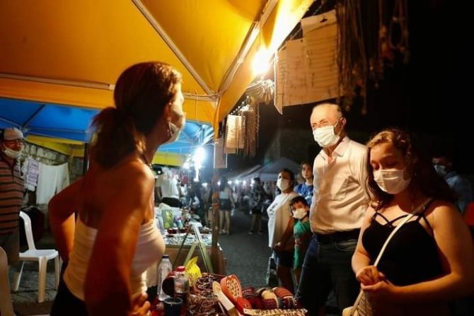Apollon Takı Stantlarına, stant açan zanaatkar kadınların istek ve şikayetlerini dinleyen, Başkan Atabay, "Zanaatkar kadınlarımızın el emeği göz nuru ürünlerini ekonomik anlamda geri dönüşüm sağlanması için stantlarımızı açtırılmasını sağladık. Zanaatkar kadınlarımıza desteğimiz devam edecektir. Apollon Takı Stantlarımız 25 Temmuz 2021 tarihine kadar kapılarını açık tutacaktır. Yoğun ilginin ve talebin devam etmesi halinde süreyi uzatabiliriz. Tüm vatandaşlarımızı stantlarımıza bekliyoruz" ifadelerini kullandı.