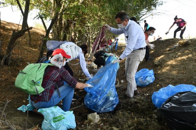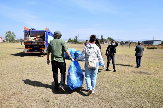 Toplanan çöpler, Tepebaşı Belediyesi'nin çöp toplama araçları ile alandan taşındı.