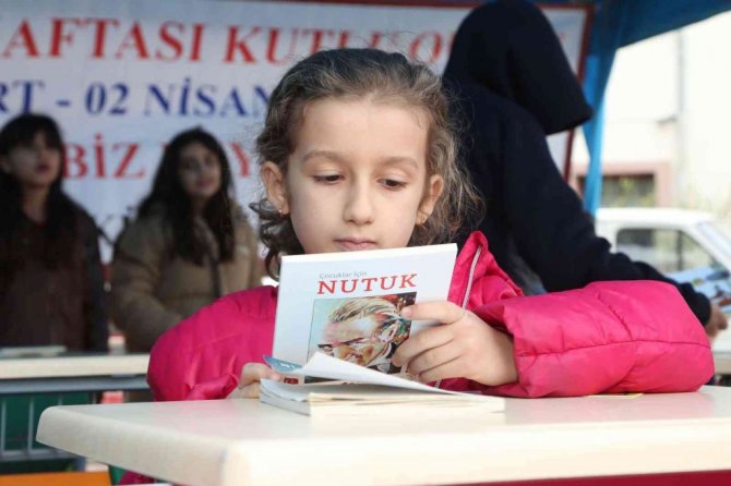 Öğrencilerle konuşan Efeler Belediye Başkanı Mehmet Fatih Atay, "Siz gelecekte ülkemizi yöneteceksiniz. Sizin bilgiyle büyümenizi çok önemsiyorum. Bunun için kitap kafeler açtık. Orada bugün size armağan ettiğimiz Ata'mızın değerli eseri gibi birbirinden güzel kitaplar sizi bekliyor" diyerek öğrencileri Kütüphane Haftası dolayısıyla kitap kafelere davet etti. Başkan Atay sözlerinin devamında, "Bu kitapta Büyük Atatürk verdiği o mücadeleyi ve yaptığı büyük işleri anlatıyor. Sizler de büyük insan olmak, başarılı işler yapmak istiyorsanız, lütfen bu kitabı okuyun ve arkadaşlarınıza da okutun" dedi.