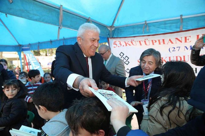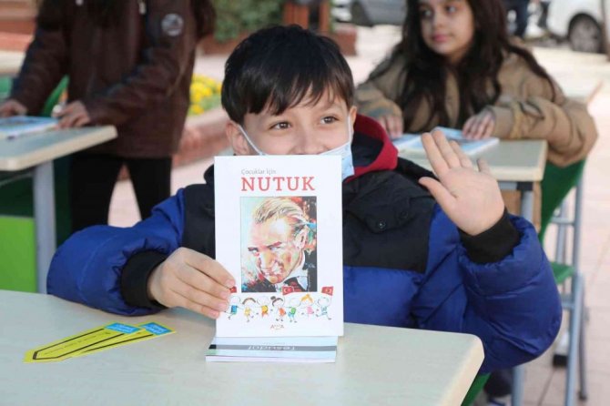 Efeler Belediye Başkanı Mehmet Fatih Atay, "Kütüphane Haftası" dolayısıyla Efelerli çocuklara Ulu Önder Gazi Mustafa Kemal Atatürk'ün Nutuk kitabının çocuklara yönelik bir baskısını hediye etti.