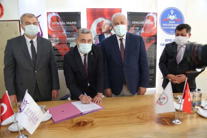 Efeler Belediye Başkanı Mehmet Fatih Atay, Efeler İlçe Milli Eğitim Müdürlüğü ve Efeler Halk Eğitim Merkezi Müdürlüğü arasında "Hayat Boyu Öğrenme" faaliyetleri kapsamında işbirliği protokolü imzalandı. Protokol kapsamında, Efeler Belediyesi kursiyerlerin gelir elde edici çalışmalarına katkı sağlayacak.