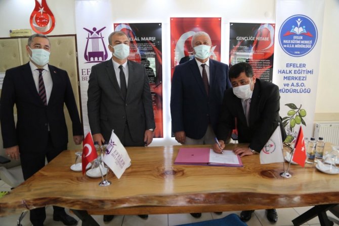 Efeler Belediyesi ile Efeler Halk Eğitim Merkezi işbirliğinde verilecek kurs, açılacak eğitim, seminer, rehberlik, etkinlik, üretim, kurs ve diğer faaliyetlerle vatandaşların eğitim ihtiyaçlarını karşılamak amacıyla imzalanan protokol kapsamında, Efeler Belediyesi; kursiyerlerin gelir elde edici çalışmalarına katkı sağlayacak. Efeler Halk Eğitim Merkezi'nde gerçekleşen imza töreninde konuşan Efeler Belediye Başkanı Mehmet Fatih Atay, "Ben çok şanslıyım çünkü ufku açık bürokratlarla çalışıyorum. Kendilerine çok teşekkür ederim. Bu protokol meslek edinmek ile ilgili fakat meslek edinen vatandaşlarımızın para kazanabilmeleri için gerekli ortamı da sağlayabilmek gerekiyor. Bundan da sizler sorumlusunuz. Bize proje getireceksiniz, biz de her türlü maddi katkıyı yapacağız ve o insanların elde ettikleri meslek becerilerini kazanca dönüştürmelerini ve özgürce, mutlu, refah içinde yaşamalarını sağlamayı amaçlıyoruz. Bu anlayışa sahip çıktıkları için Aydın İl Milli Eğitim Müdürü, Efeler İlçe Milli Eğitim Müdürü ve Halk Eğitim Merkezi Müdürü'ne çok teşekkür ederim" dedi.