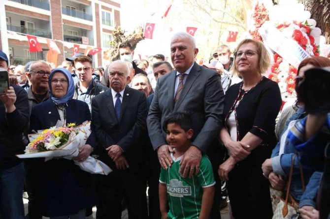 Umurlu Mahallesi'nde açılan yeni Kitap Kafe ve Hanımevi için Başkan Atay'a teşekkür eden Umurlu Mahalle Muhtarı Soner Avşar, "Başkanımız ile 3 yıldan bu yana birlikte güzel işler başardık. İnanın yıllardan beri çözülemeyen sorunları çözdük. Buraya bir hizmet havası getirdiniz. Değerli katılımcılar, değerli misafirler hepinize ayrı ayrı teşekkür ediyorum. Başkanımıza canı yürekten alkış istiyorum" ifadelerini kullanarak Atay'a çiçek takdim edip teşekkür etti.