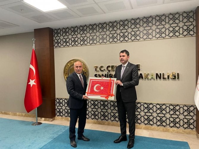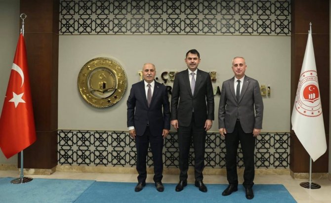Yenişehir Belediye Başkanı Davut Aydın ve İlçe Kaymakamı Rahmi Köse, Çevre, Şehircilik ve İklim Değişikliği Bakanı Murat Kurum'u makamında ziyaret etti.