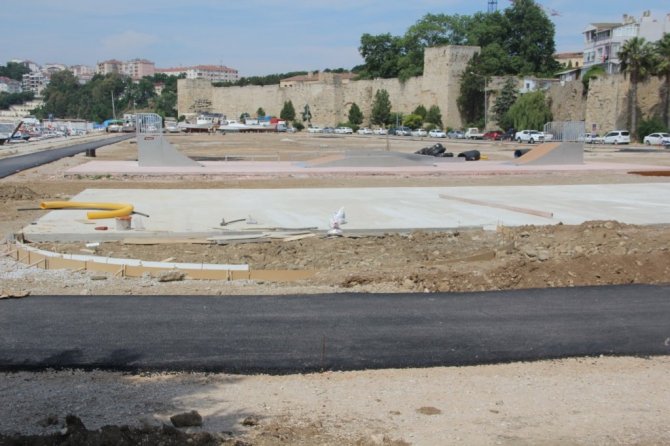 Çekek Yeri ve Buzhane Binası restorasyonuna ilişkin bilgiler veren Belediye Başkanı Barış Ayhan, "Çekek yeri ile ilgili de 4 ayrı ihale yaptık. Çim ve sulama ihalesi. Skate park ihalesi. Çocuk parkı ihalesi ve taş yollar ihalesi. Onun ihalelerinin tamamını yaptık. Yer tespitini yaptık. Kaldırımın hemen iç çeperinde bir bisiklet yolu olacak orada. O bisiklet yolunun içerisinde orada hiç yapı ticari işletme olmayacak. Ortasında Sabahattin Ali'nin bir heykelini düşündük. Sabahattin Ali'nin yatmış olduğu koğuşun hemen ayak ucuna denk gelecek bir konuma onu yerleştirdik. Onun dışında skate park, çocuk parkı onun yanında oturma grupları olacak. Hemen Çekek Yeri'nin olduğu tarafta da bir platform yapıyoruz. Hemzemin platform. Orası da ileride konser ve benzeri etkinlikler yapmak için elektrik tesisatı ile ilgili sıkıntı yaşanmasın zeminle ilgili sıkıntı yaşanmasın diye beton bir platform yapıyoruz. Sinop'a konser vermeye ekipmanları gelen tırlar hiç şehir içine girmeden orada sitemini kuracaklar. Sinoplularda da izlemeye oraya gelecekler. Buzhane binası da çok hızlı şekilde ilerliyor. Onun teslim tarihi normalde Kasım'ın 11'i. Ama bitmek üzere inşallah müteahhit firma bize çok kısa bir sürede teslim edecek az bir işi kaldı. Şimdi orada arkadaşlarımız mefruşat ihalesine çıkıyorlar. Bunu da tamamladığımızda orayı çok güzel bir etkinlikle yine pandemi nüksetmezse şayet orada çok güzel bir görsel şölenle bir konserle hem o parkımızın hem de kültür merkezimizin açılışını yapmayı planlıyoruz" ifadelerini kullandı.