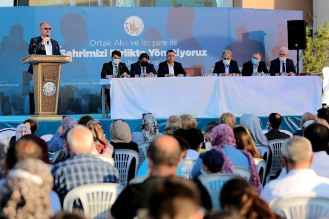 Belediye Başkanı Hilmi Bilgin, "Projelerimizi de bir bir hayata geçiriyoruz. Kızılırmak projemizin en önemli ayağı olan Kızılırmak atık su kolektör hattı ihalesini yaptık. Yaklaşık 10 milyon Euro değerinde. İnşallah seneye Kasım ayında alt yapı işi tamamlanmış olur. Bu bizim için çok çok önemliydi. Avrupa Birliği'nin desteğiyle yapıyoruz, bu proje tamamlandığı zaman Kızılırmak'ın kirlenmesinin önüne geçmiş olacağız. Kızılırmak Projesi sadece bu şehrin değil, Yenişehir'in, Yahyabey'in, Kızılırmak'ın veya Üçlerbey Mahallelerinin değil, Sivas'ın vizyon projesi. Bu projeyi o yüzden çok çok önemsiyoruz. Bu projeyi bir devlet projesi olarak görüyoruz. Şehrin geleceğine tesir edecek bir proje olarak görüyoruz. Kızılırmak'ın iki tarafında da proje uygulayacağımız bir alan var ancak o alanın mülkiyet sahibi Sivas Belediyesi olarak biz değil hemşerilerimizdir. Biz burada da 18 uygulayarak o bölgeyi kamulaştırma yüküne girmeden mülkiyet sorunu çözülmüş bir projeyi hayata geçirmiş olacağız" şeklinde konuştu.