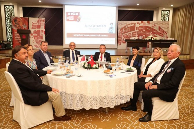 Antalya Büyükşehir Belediye Başkanı Muhittin Böcek, Antalya Sanayici ve İş İnsanları Derneği (ANSİAD) ve Konyaaltı Sanayici ve İş İnsanları Derneği'nin (KONYSİAD) uzun bir aradan sonra yüz yüze gerçekleştirilen toplantılarına konuk oldu. İlk olarak ANSİAD'ın 10. Olağan Toplantısı'na katılan Başkan Muhittin Böcek, "Medeniyet Tarımı-Cennette İlk Sofra" konulu sunum gerçekleştiren Mine Ataman'a ANSİAD Başkan Akın Akıncı ile plaket takdim etti. Başkan Muhittin Böcek, ardından Konyaaltı Sanayici ve İş İnsanları Derneği (KONYSİAD) Başkanı İlhami Kaplan ve yönetiminin 15 ay sonra gerçekleştirilen toplantısına katıldı. Böcek, Antalyalı iş insanlarına belediye hizmetlerini ve projelerini anlattı.