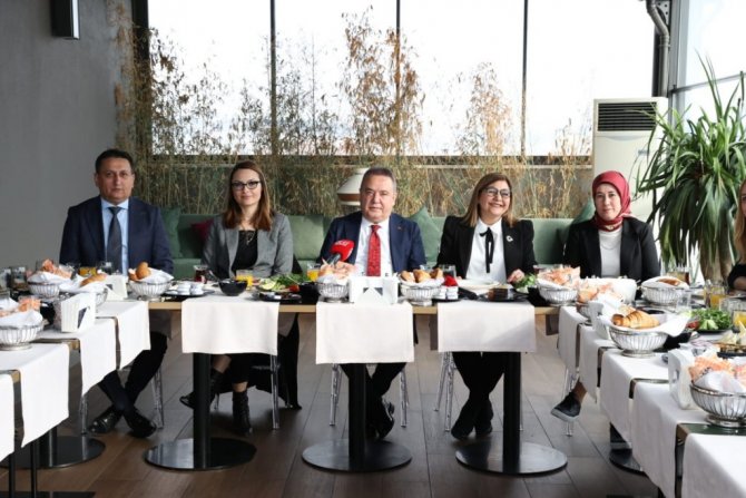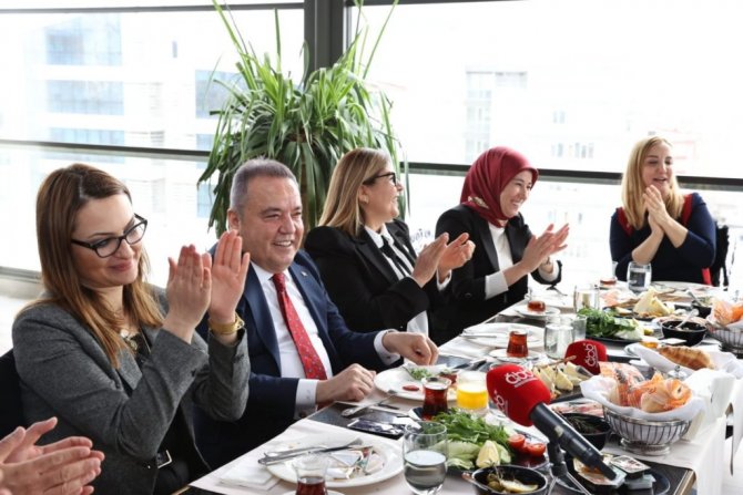 Antalya Büyükşehir Belediye Başkanı Muhittin Böcek, 8 Mart Dünya Emekçi Kadınlar Günü nedeniyle Antalya'da görev yapan kadın muhtarla kahvaltıda bir araya geldi. Kadın muhtarların 8 Mart'ta Ankara programları nedeniyle buluşmayı 9 Mart'ta yaptıklarını belirten Başkan Böcek, çalışma arkadaşlarıyla bir arada olmaktan mutluluk duyduğunu söyledi.