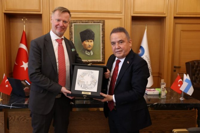 Daha önce de düzenlenen seminerlere katılmak için Antalya'ya gelen Danimarka, Finlandiya ve İsveç Büyükelçileri Başkan Muhittin Böcek'e teşekkür ederek geçmiş olsun dileklerini iletti. Ziyarette hazır bulunan Antalya Büyükşehir Belediyesi Başkan Danışmanı Lokman Atasoy da "Antalya'yı iklim krizine nasıl hazırlıyorsunuz" sorusu üzerine çevre ile ilgili yapılan çalışmalarla ilgili bir sunum yaptı. Atasoy, yapılan çalışmaları kısaca özetleyerek, hem denizlerin korunması, hem de çevre bilincinin arttırılması konusunda yapılan çalışmalar nedeniyle Antalya Büyükşehir Belediyesi'nin iklim dostu kuruluş belgesi almaya hak kazanan tek belediye ve tek kamu kuruluşu olduğunu söyledi.
