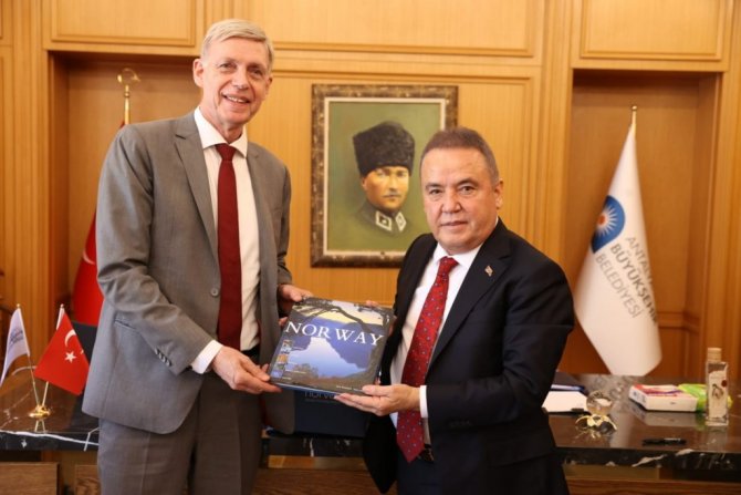 Antalya Büyükşehir Belediye Başkanı Muhittin Böcek, Norveç, Finlandiya, Danimarka ve İsveç Büyükelçilerini, Antalya Fahri Konsolosları ile birlikte kabul etti. Başkan Muhittin Böcek de özellikle çevre, kadın, gençlik ve eğitim gibi konular başta olmak üzere sosyal ve kültürel anlamda işbirliği projelerine hazır olduklarını ifade etti.