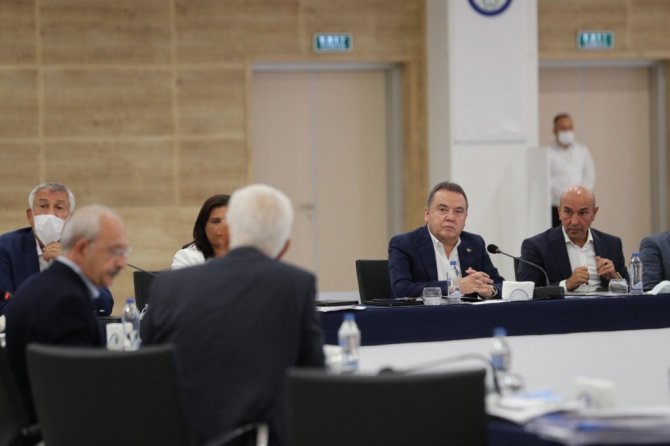 Cumhuriyet Halk Partili Büyükşehir Belediye Başkanları, Muğla Büyükşehir Belediyesi'nin ev sahipliğinde bir araya geldi. CHP Genel Başkanı Kemal Kılıçdaroğlu'nun başkanlığında gerçekleştirilen toplantıya, Antalya Büyükşehir Belediye Başkanı Muhittin Böcek, İstanbul Büyükşehir Belediye Başkanı Ekrem İmamoğlu, İzmir Büyükşehir Belediye Başkanı Tunç Soyer, Mersin Büyükşehir Belediye Başkanı Vahap Seçer, Muğla Büyükşehir Belediye Başkanı Osman Gürün, Aydın Büyükşehir Belediye Başkanı Özlem Çerçioğlu, Tekirdağ Büyükşehir Belediye Başkanı Kadir Albayrak, Adana Büyükşehir Belediye Başkanı Zeydan Karalar ve Hatay Belediye Başkanı Lütfü Savaş katıldı.