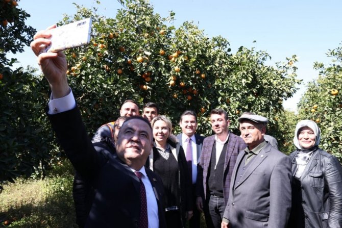 Başkan Böcek'in Kumluca programı kapsamında, daha önce Tarımsal Hizmetler Dairesi Başkanlığı tarafından faydalı böcek salınımı yapılan Çiftçi Muhammet Arıcan'ın portakal bahçesini ziyaret etti.