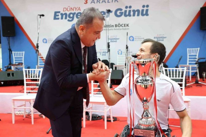 Başkan Böcek etkinlikte süper lige yükselerek kupa kaldıran ASAT Tekerlekli Sandalye Basketbol Takımı ile ASAT Spor Kulübü Ampute Futbol Takımı oyuncularını tebrik ederek, hediye verdi. Dünya Engelliler Günü'ne özel hazırlanan programda engelli öğrenciler söylenen türküler, folklor ve dans gösterileri ile eğlendi.