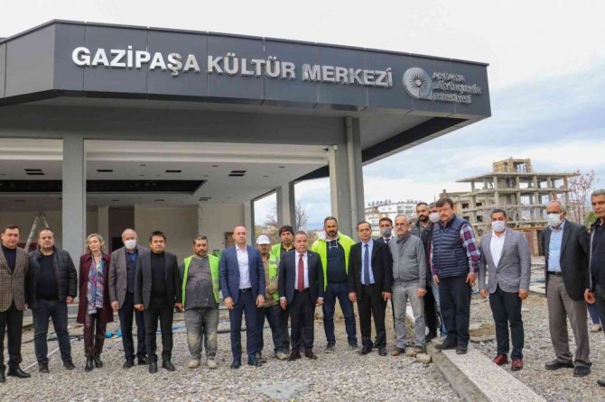 Başkan Böcek, daha sonra tiyatro ve sinema salonu bulunmayan ilçede önemli bir eksikliği giderecek olan Antalya Büyükşehir Belediyesi Gazipaşa Kültür Merkezi inşaatını inceleyip, bilgi aldı. Gazipaşa Belediye Başkanı Mehmet Ali Yılmaz ile birlikte şantiyeyi gezen Başkan Böcek, Nisan ayı içerisinde inşaat çalışmalarının tamamlanmasının planlandığını söyledi. Başkan Böcek, 6 bin 700 metrekarelik bir alan üzerinde inşaatı tamamlanmak üzere olan Gazipaşa Kültür Merkezi için bugüne kadar 40 milyon TL yatırım yapıldığını belirterek, "5 bloktan oluşan proje kapsamında bir blok içinde sinema salonu, çok amaçlı salon, prova odaları ve fuayeler yer alacak. Kültür merkezinin diğer bloğunda ise ATASEM, sosyal hizmet birimlerimiz ve kreş yapmayı planlıyoruz. Gazipaşa'da önemli bir eksikliği tamamlayacak proje ile ilçe halkı ilk kez tiyatro ve sinema salonuna kavuşacak" dedi.