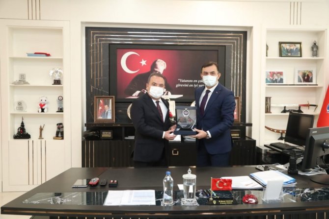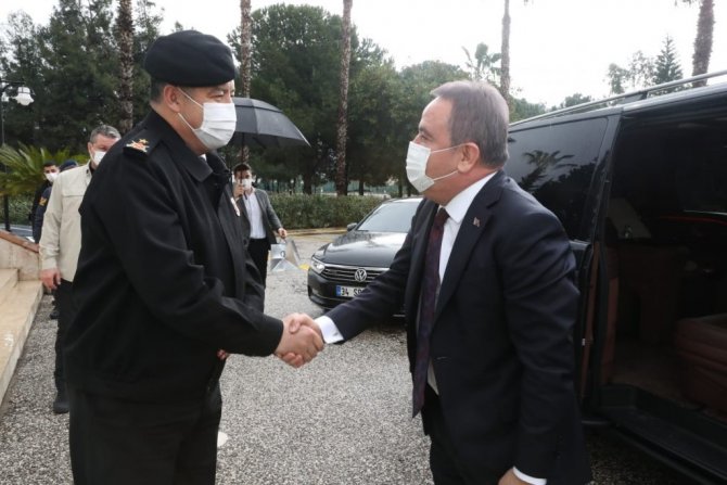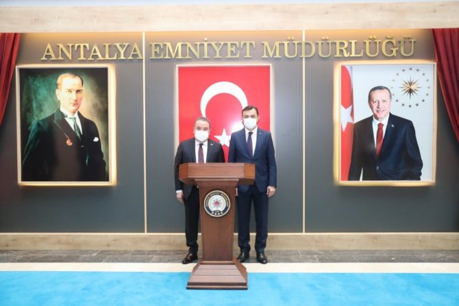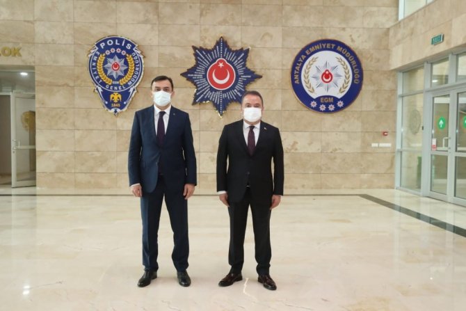 Antalya Büyükşehir Belediye Başkanı Muhittin Böcek, Antalya İl Emniyet Müdürü Mehmet Murat Ulucan ve Antalya İl Jandarma Komutanı Tuğgeneral Yavuz Özfidan'ı ziyaret etti.