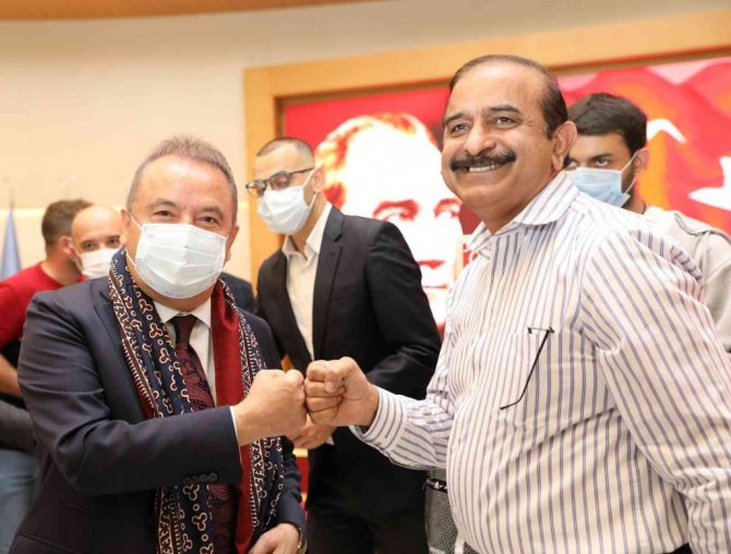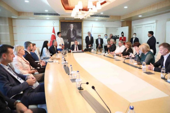 Antalya Büyükşehir Belediye Başkanı Muhittin Böcek, Muratpaşa Belediyesi ev sahipliğinde gerçekleştirilen Kaleiçi Old Town Festivali için Antalya'ya gelen 21 ülke heyetini kabul etti. Muratpaşa Belediye Başkanı Ümit Uysal'ın eşlik ettiği ziyarette, Büyükşehir Belediye Başkanı Muhittin Böcek, heyete Antalya'yı anlattı.