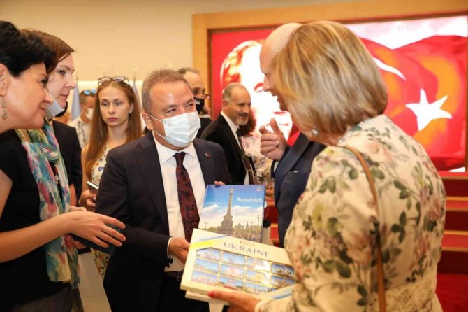 Antalya Büyükşehir Belediye Başkanı Muhittin Böcek, 21 ülke heyetine Antalya hakkında bilgi verdi. Başkan Muhittin Böcek, Patara Antik Yılı anısına yapılan fincan takımı hediye etti. Ülke temsilcileri de Başkan Muhittin Böcek'e ülkelerini temsilen çeşitli hediyeler verdi.