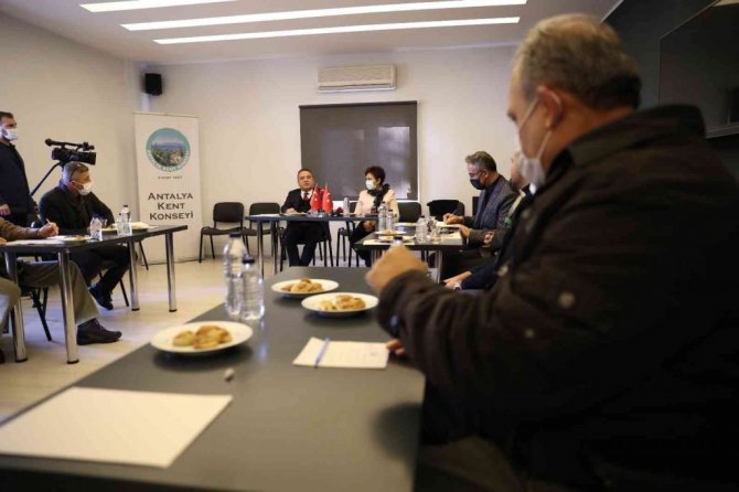 Antalya Kent Konseyi'ni ziyaret eden Büyükşehir Belediye Başkanı Muhittin Böcek, tarımdan turizme, sağlıktan sanata, alt yapıdan üst yapıya Antalya Büyükşehir Belediyesi'nin çalışmalarını anlatarak, görüş alışverişinde bulundu. Devam eden ve hayata geçirilecek projeler ile ilgili Kent Konseyi Yürütme Kurulu'na bilgi veren Başkan Böcek, her fikre ve düşünceye büyük önem verdiğini söyledi. Kenti ortak akılla yönettiklerini ifade eden Başkan Böcek, bu kapsamda Antalya Kent Konseyi'nin çalışmalarının kent adına son derece önemli olduğunu söyledi.