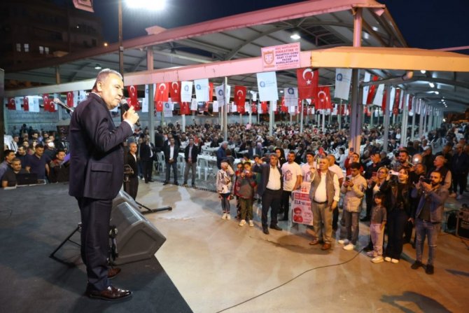 Toplantının ardından Başkan Muhittin Böcek, Alanya Salı Pazarı'na geçti. Yaklaşık 6 bin kişinin katıldığı iftar programında ilahiler okundu, Kuran-Kerim tilavetinin ardından semazenler eşliğinde iftar yapıldı. Başkan Muhittin Böcek, Antalya Büyükşehir Belediyesi'nin Alanya Salı Pazarı'nda verdiği iftar yemeğinde Alanya Belediye Başkanı Adem Murat Yücel, Gazipaşa Belediye Başkanı Mehmet Ali Yılmaz muhtarlar, STK temsilcileri ve vatandaşlarla birlikte iftar yaptı. Başkan Böcek, 11 Ay'ın sultanı Ramazan'ın hayırlara vesile olmasını diledi. Ramazan Ayı'nın birlik, beraberlik ve dayanışmanın simgesi olduğunu hatırlatan Başkan Böcek, tüm Alanyalı vatandaşların Ramazan Bayramı da kutladı.
