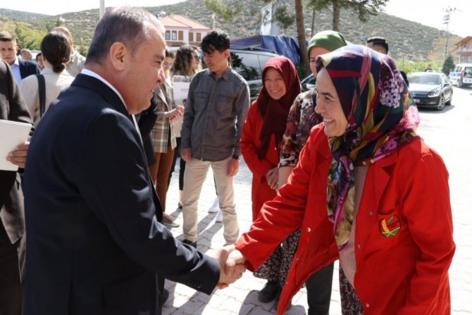 Antalya Büyükşehir Belediye Başkanı Muhittin Böcek, ilçe ziyaretlerine Korkuteli ile devam etti. Büyükşehir Belediyesi genel sekreter yardımcıları, danışmanları, daire başkanları, ASAT Genel Müdürü İbrahim Kurt ile birlikte Korkuteli'ne çıkarma yapan Başkan Muhittin Böcek, ilk olarak Büyükşehir Belediyesi'nin desteklediği Korkuteli Tarımsal Kalkınma Kooperatifi'ni (KORKOOP) ziyaret etti. Kadın girişimcilerin her zaman yanında olduğunu belirten Başkan Böcek, "Üreten kadınlarımızın yanında olmaya ve destek vermeye her zaman devam edeceğiz. Hiçbir ekonomik gücü ve mesleği olmayan kadınlarımız artık kendi ayakları üzerinde duruyor. Kadınlarımızın el emeklerinin değerlendirilmesi bizi de mutlu ediyor. Birbirinden lezzetli el emeği ürünlerin yer aldığı Korkoop'u tüm Antalyalıların ziyaret etmesini isterim" dedi.