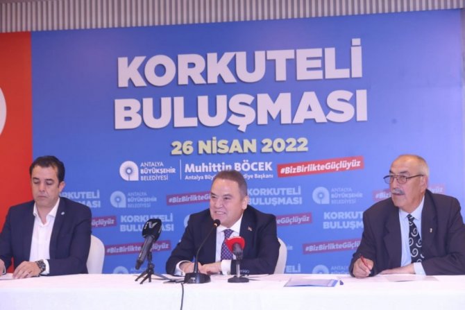 Başkan Muhittin Böcek, daha sonra Ata yurdu Korkuteli'de Gümüşhan Otel'de STK temsilcileri ve muhtarlarla buluştu. CHP Korkuteli İlçe Başkanı Şeyhali Kara ve