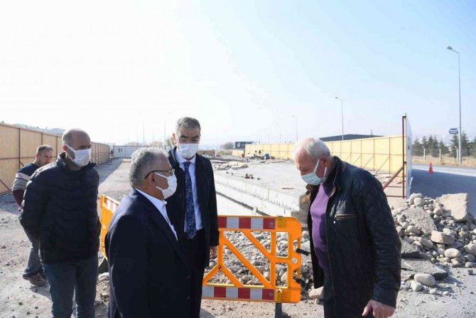 Kayseri Büyükşehir Belediye Başkanı Dr. Memduh Büyükkılıç, Talas ilçesini Erciyes Bulvarı'na bağlayacak olan yolun genişletme çalışmaları kapsamında sürdürülen 4 şeritli yol ve taşkın koruma kanalı menfez çalışmalarını yerinde denetledi.