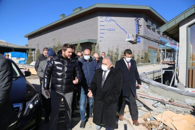 Kayseri'nin sembolü olan dağcılık ve kış sporları alanında 112 kilometrelik 41 kayak pisti ile cazibe merkezi olan Erciyes Kayak Merkezi'ndeki 6 adet yeni yapılan dükkân inşaatını, 19'uncusu yapılan mekanik tesisi ve kayak hizmetlerini yerinde inceleyen Başkan Büyükkılıç, yapımı tamamlanan otelleri de gezdi.