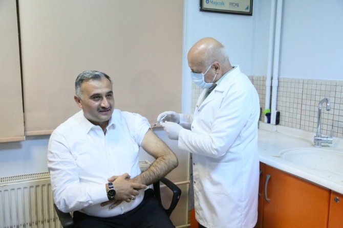 Develi Belediye Başkanı Mehmet Cabbar'ın aşısını doktor olan AK Parti Kayseri Milletvekili İsmail Tamer yaptı.