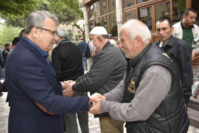 Bayram namazını Hacı Yahya Camisi'nde kılan Yunusemre Belediye Başkanı Dr. Mehmet Çerçi namaz sonrası vatandaşlarla bayramlaştı.