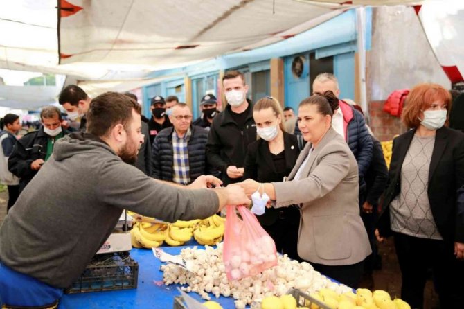 Aydın Büyükşehir Belediye Başkanı Özlem Çerçioğlu, Atça Pazarı'nı ziyaret etti.