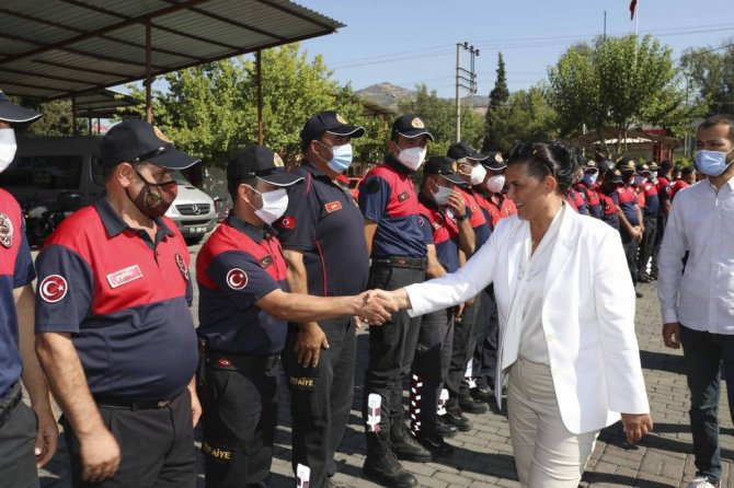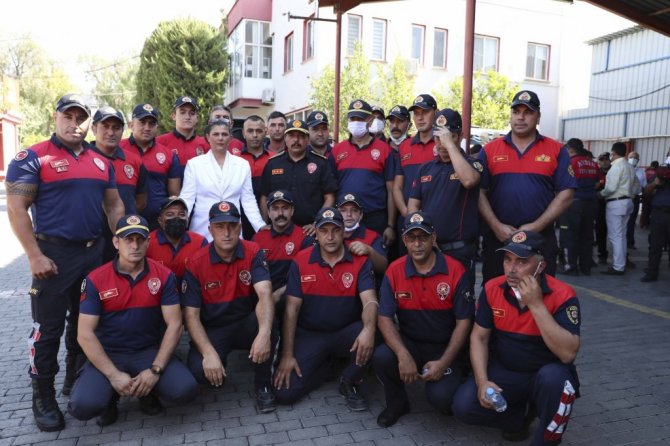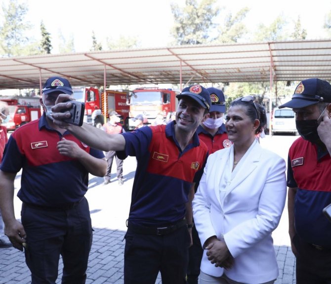 Aydın Büyükşehir Belediye Başkanı Özlem Çerçioğlu, Aydın ve Marmaris'teki orman yangınlarında kahramanca mücadele eden Büyükşehir itfaiye ekiplerini ziyaret etti.