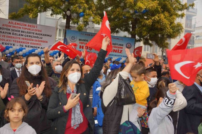 Aydın Büyükşehir Belediyesi personelinin 24 saat durmadan Aydın halkına hizmet etmek için fedakarca çalıştığını ifade eden Aydın Büyükşehir Belediye Başkanı Özlem Çerçioğlu, "Çalışma arkadaşlarımız sağ olsunlar bayram demeden, gece demeden, hafta sonu demeden çoluğundan çocuğundan fedakarlık yaparak Aydın halkına hizmet ediyorlar. Bu hizmetlerimizin karşılığında da 2019 yerel seçimlerinde Aydın halkı yüzde 54 ile teşekkürlerini bize sundular. Alt yapısı ile üst yapısı ile gerçekten büyük hizmetler yaptık. Ama ülkemiz o kadar zor günlerden geçiyor ki Aydın Büyükşehir Belediyesi olarak çılgın projemiz sosyal belediyecilik. Her gün en az bin kişi "tenceremizi kaynatamıyoruz, kış geldi kömürümüz yok" diyerek belediyemizi arıyor. Aydın halkından topladığımız vergilerle Aydın halkına sosyal belediyecilik adı altına hizmet vermeye devam ediyoruz. Belediye başkanı olduğumda sizlere bir gün emeğinizin karşılığını geciktirmeden ödeyeceğime söz vermiştim. Bundan sonra da aynı sözü veriyorum. Emeğiniz bir gün gecikmeden banka hesaplarınıza yatmaya devam edecek. Hiç bir zaman ailenizin önünde boynunuzu eğdirmeyeceğim. Hepinize ayrı ayrı teşekkür ediyorum, çok sağ olun, var olun" diye konuşarak işçilere özverili çalışmalarından dolayı teşekkür etti.