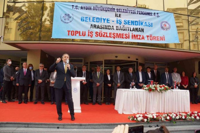 Aydın Büyükşehir Belediyesi ile Belediye-İş Sendikası arasında imzalanan toplu iş sözleşmesi töreninde konuşan Aydın Büyükşehir Belediye Başkanı Özlem Çerçioğlu, "Emeğinizin karşılığını bir gün geçmeden ödemeye devam edeceğim" dedi.