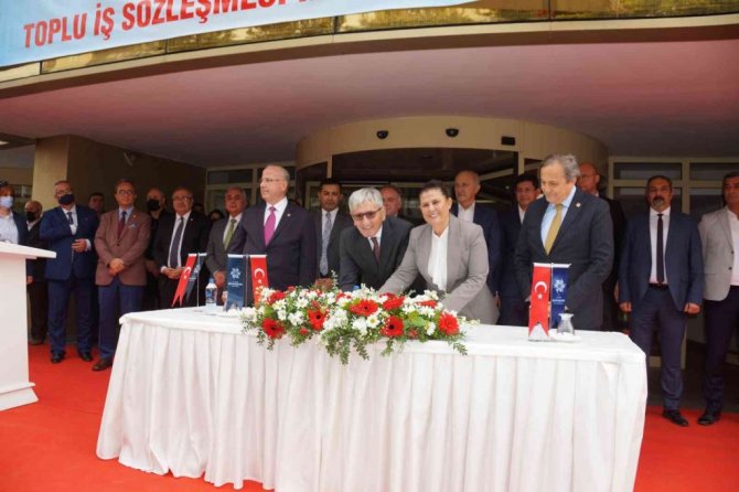 Aydın Büyükşehir Belediyesi ve Belediye-İş Sendikası arasında toplu iş sözleşmesi imzalandı. Belediye hizmet binası önünde düzenlenen imza törenine CHP Yerel Yönetimlerden Sorumlu Genel Başkan Yardımcısı Seyit Torun, CHP Aydın İl Başkanı Ali Çankır, Belediye-İş Sendikası Genel Başkanı Nihat Yurdakul, Belediye-İş Sendikası Aydın İl Başkanı Hidayet Yaman, CHP Aydın milletvekilleri, CHP'li ilçe belediye başkanları, işçiler ve aileleri katıldı.