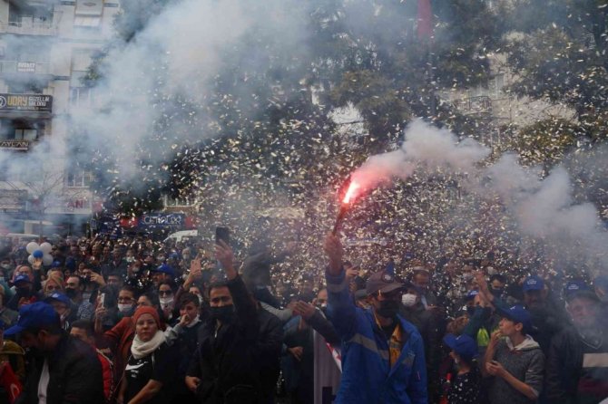 Konuşmaların ardından Belediye-İş Sendikası Genel Genel Başkanı Nihat Yurdakul ile toplu sözleşmeye imza atan Aydın Büyükşehir Belediye Başkanı Özlem Çerçioğlu, işçilere toplu sözleşmeden doğan 3 aylık maaş farklarının tören sonu itibari ile hesaplara yatırıldığı müjdesini verdi.