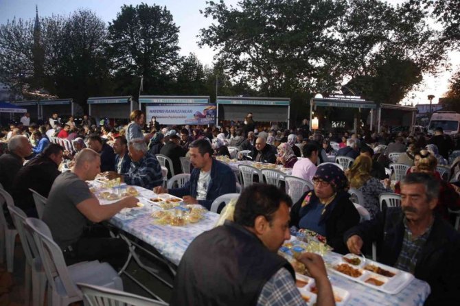 Ramazanın bereketini iftar sofralarında yaşatan Aydın Büyükşehir Belediyesi, her gün farklı bir noktada iftar sofrası kurmaya devam ediyor.