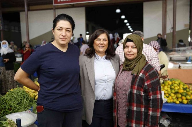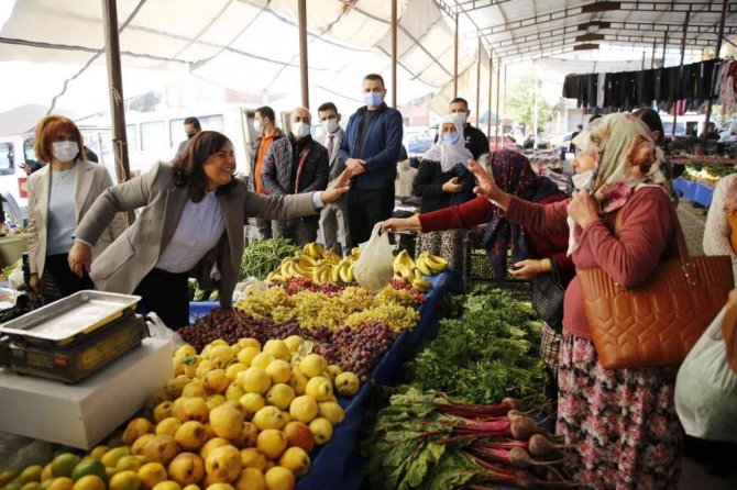 Aydın Büyükşehir Belediye Başkanı Özlem Çerçioğlu, Ata Mahallesi'ndeki semt pazarını ziyaret etti.