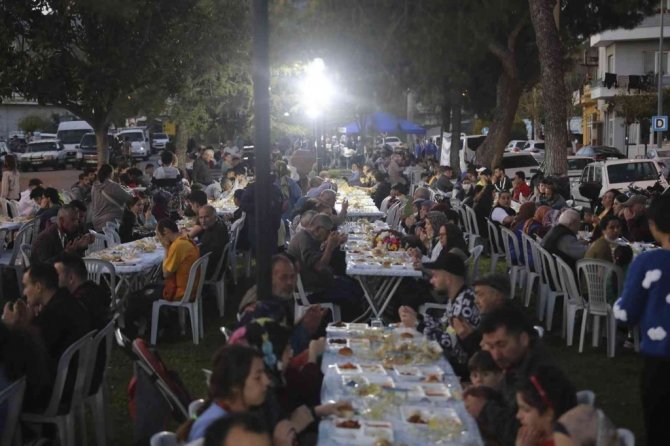 Aydın Büyükşehir Belediyesi'nin kentin farklı noktalarına kurduğu geleneksel iftar sofraları, binlerce vatandaşı bir araya getirmeye devam ediyor.
