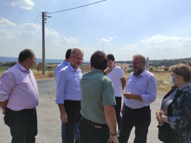 AK Parti Kütahya İl Başkanı Sebahattin Ceyhun, AK Parti Kütahya Milletvekilleri Ahmet Tan ve Ceyda Çetin Erenler ile birlikte Domaniç ilçesinde incelemelerde...