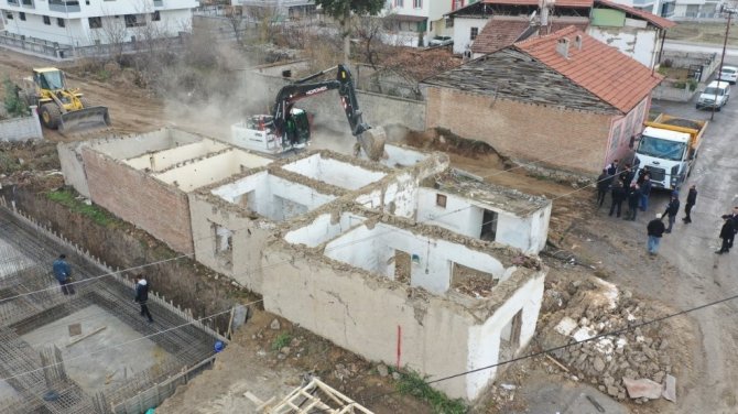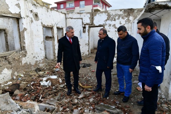 Başkan Çınar, metruk evin yıkımı ve yol açma çalışmalarını inceledi