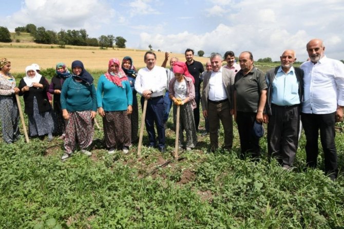 Başkan Mustafa Demir, Havza ilçesindeki incelemelerinde kadınlar ve çocuklarla da yakından ilgilendi. Çocuklara çeşitli hediyeler veren Başkan Demir, daha sonra tıbbi ve aromatik bitki yetiştiriciliğini yaygınlaştırmak için geliştirdikleri proje kapsamında üretimin başladığı tıbbi nane tarlasına girerek incelemelerde bulundu. Çiftçilerle birlikte çapa yapan Başkan Demir, üretimle ilgili bilgi aldı.