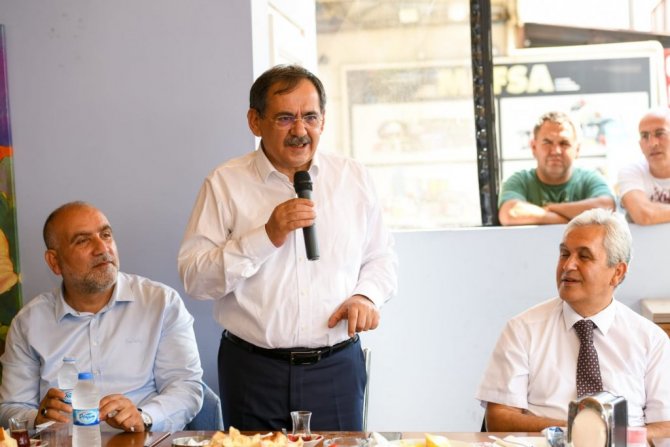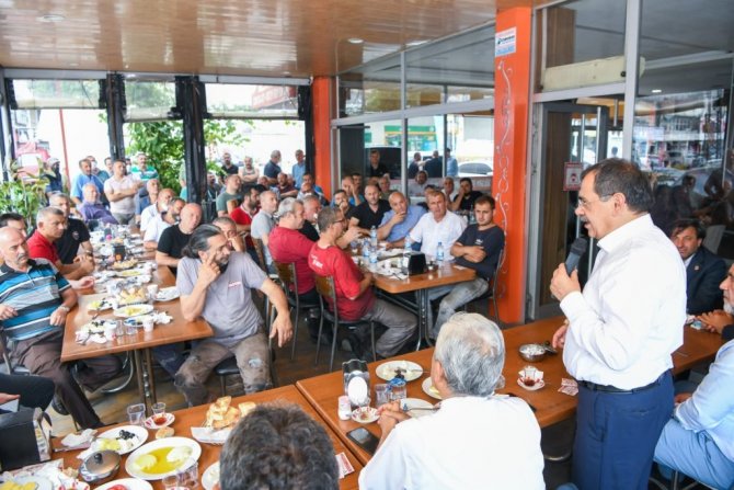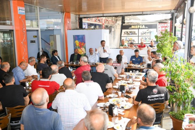 Büyükşehir Belediye Başkanı Mustafa Demir, Gülsan Sanayi esnafı ile kahvaltıda buluştu. Canik Belediye Başkanı İbrahim Sandıkçı, Canik Kaymakamı Mahmut Helal, Madeni ve Sanatkarlar Odası Başkanı Eyüp Aydın, Canik İlçe Emniyet Müdürü Hüseyin Şafak ile birlikte esnafla bir araya gelen Başkan Demir, sorunları dinleyip Toybelen projesinde gelinen son durumu anlattı.