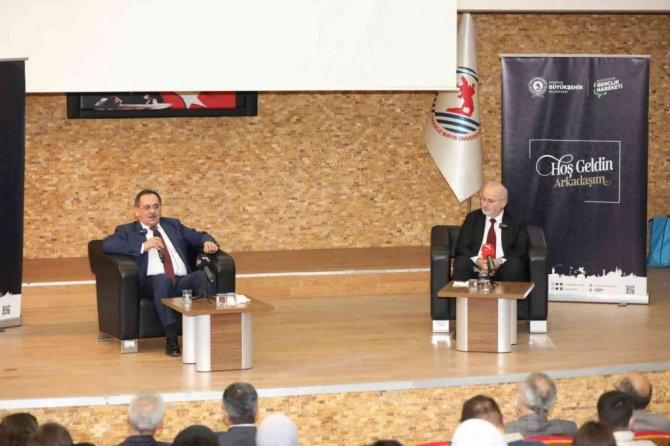 "Bu programı yapmamızın amacı, şehir içi veya dışından gelen üniversite öğrencilerimizin eğitim hayatları boyunca yaşayacakları süreç içerisinde Büyükşehir Belediyesi olarak kendi yetki ve ilgi alanlarımızın maksimum geliştirilmesidir. Yerel yönetimler olarak Türkiye'de bir yarış içindeyiz. Maksimum düzeyde projelerimizi hayata geçirme gayretindeyiz. Hizmet noktasında kendimizi addediyoruz. Bizim bilmediğimiz konularda önerilerinize açığız. Sizleri belediyeye davet ediyorum. Gelirseniz iletişimi artırabiliriz. Staj yapabilir, fikirler sunabilirsiniz. Her zaman sizin yanınızdayız."