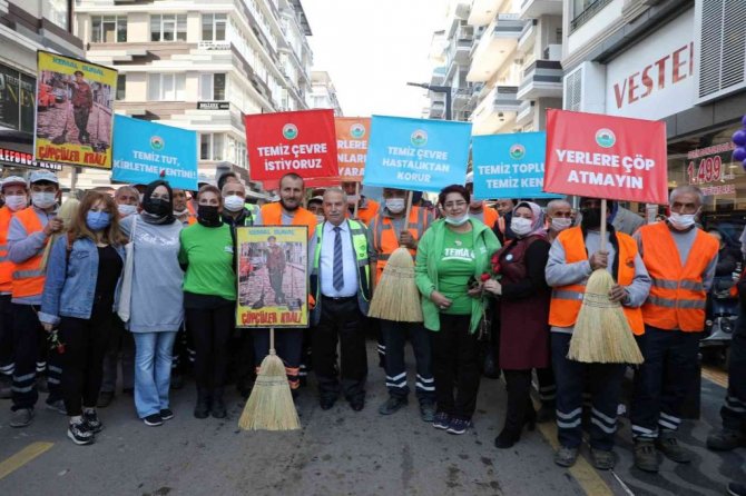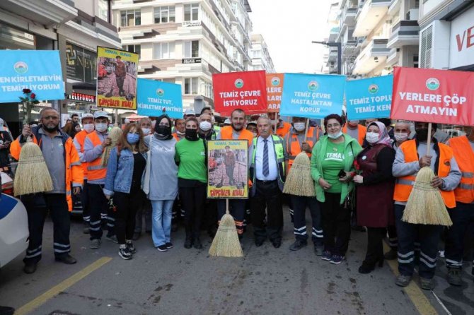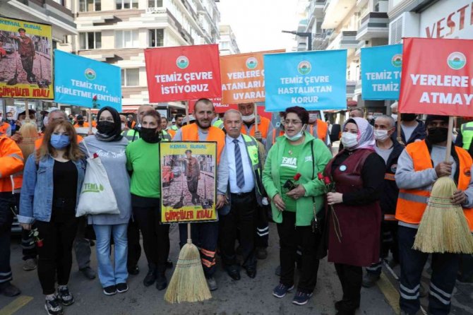 Temizlik işçileri, belediye personelleri ve vatandaşlar bando eşliğinde İstiklal Caddesi boyunca yürüyerek çevre temizliği hakkında farkındalık oluşturdu.