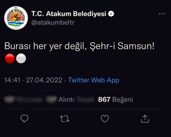 Olayın ardından Atakum Belediyesi'nin resmi hesabından kırmızı-beyaz emoji yanında "Burası her yer değil Şehr-i Samsun" paylaşımı yapılmıştı. Yapılan paylaşımın ardından Samsunspor ve Trabzonspor taraftarları paylaşımın altında gerginlik yaşamış, paylaşım yaşanan olayların ardından silinmişti.