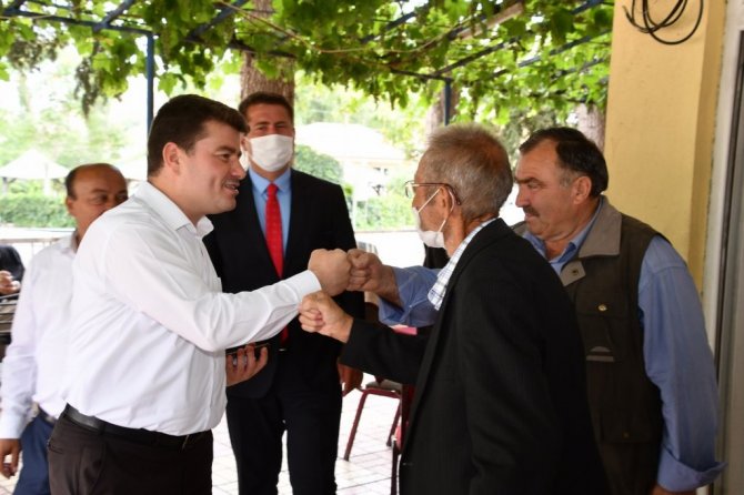 Belediye Başkanı Dr. Evren Dinçer, Helvadere ziyareti sırasında köy meydanındaki kasaba halkı ile sohbet etti.