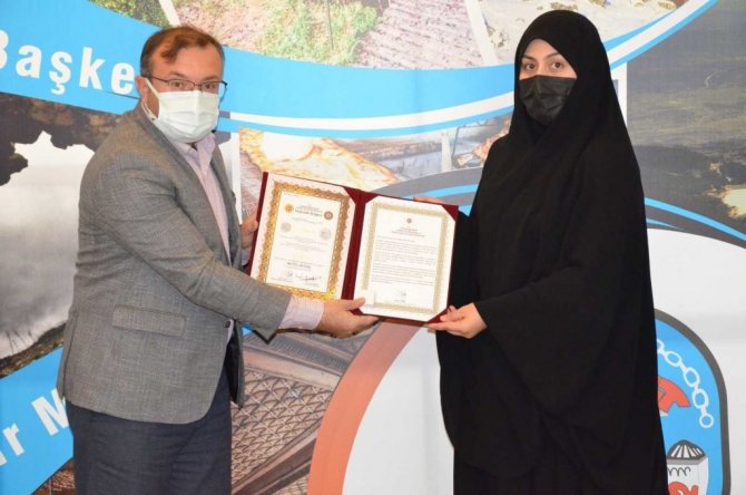 Emet Belediye Başkanı Hüseyin Doğan, Emet Cevizdere Şehitleri Hafızlık Kız Kur'an Kursu'nda hafızlığını tamamlayarak Diyanet İşleri Başkanlığı'nın 2021 yılı 2. dönem hafızlık tespit sınavında başarılı olarak Hafızlık belgesini alan Betül Sevinç'i kabul etti.