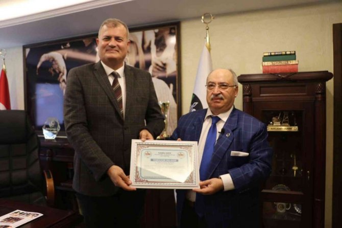 Kamu-Der Genel Başkan Yardımcısı Mehmet Ali Demirci de, "Kasım ayında yapılan ödül töreninde, 15 belediye başkanımıza ödül verdik. Başkanımız mazeret bildirerek toplantımıza katılmamıştı. Bizde kendisini ziyaret edip ödülünü burada vermek istedik. Kendisini başarılarından dolayı kutluyorum" dedi.